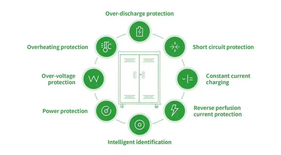 ✅安全保護系統(中國唯一製造商使用此芯片與8S保護系統,以確保充電櫃更高安全性)