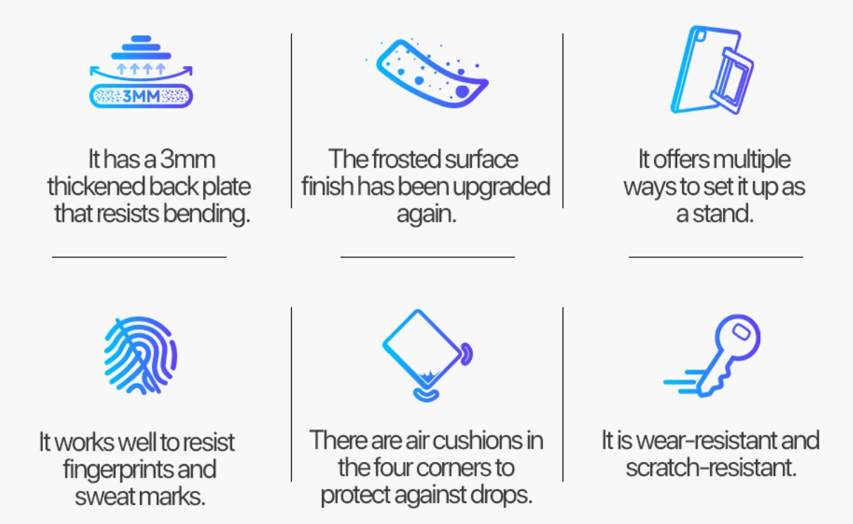 1. 3毫米加厚防彎折背板搭配加強邊框,加强保護