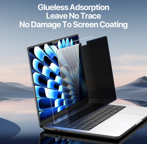 Its black frame is neither sticky nor magnetic, and the innovative nano-vacuum adsorption technology allows it to be firmly attached to the laptop screen. It is easy to install and bubble-free, glueless adsorption leaves no trace and no damage to screen coating.