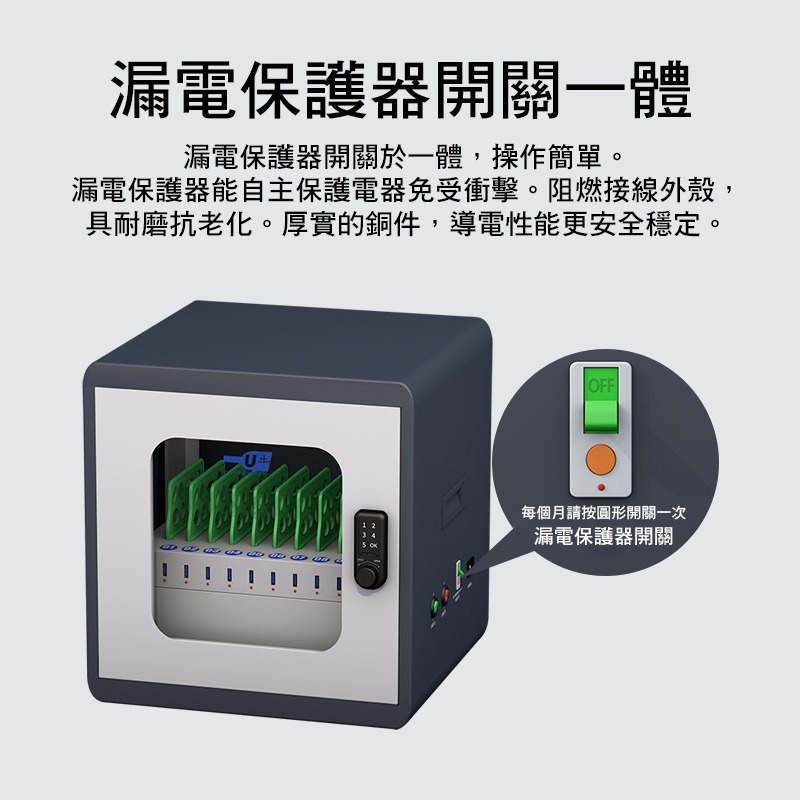 U牛的二代平板電腦充電櫃配備先進的安全技術,包括過載保護和短路保護,讓您的設備在充電過程中更加安全。此外,快速充電功能確保平板電腦能在短時間內充滿電,提升使用效率。